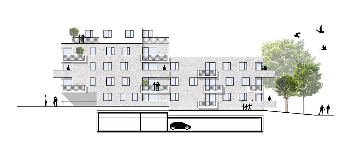 Funktion: Wohnbau Ort: Mödling, NÖ Art des Bauvorhabens: Neubau Status: fertiggestellt | 1. Preis